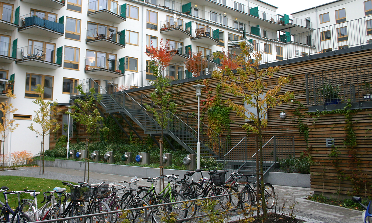 I bydelen Hammarby Sjöstad i Stockholm er der ca. 11.000 lejligheder til 25.000 indbyggere. Ved at blande boliger og virksomheder har Hammarby Sjöstad skabt en levende bydel tæt på vandet. Eurostair® har leveret de fleste af de udendørs trapper i området, herunder en 6 meter høj galvaniseret og pulverlakeret lige trappe.